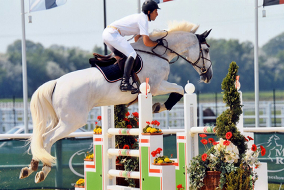 Maxima a.k.a. AlmeriaGroß in ihrer Aufmachung und Übersetzung kann sie mit Bravour die ihr einmal gezeigten Lektionen und die altersgemäßen Aufgaben überzeugend umsetzen. Mit ihrer körperlichen Grundkraft und der Übersetzung meistert sie hohe Sprünge und Kombination in gekonnter Balance. Mit sehr guten Reflexen ausgestattet springt sie mit vorzüglicher Bascule und herausragendem Vermögen. Maximas Leichtrittigkeit war einzigartig, und es war eine große Freude sie zu arbeiten. Zuhause relativ gelassen, wusste sie auf dem Turnier worum es geht. Mit ihrem grenzenlosen Vermögen spielte sie mit den Hindernissen. Heute hat sie eine sehr erfolgreiche Karriere im inter-nationalen Springsport unter dem internationalen Grand Prix Reiter Muftah Al Dhaeri / UAE. Mr. Blue, international erfolgreich im Grand Prix Sport in Europa unter Bert Romp / NL, wiederholte seine Qualität zum Siegen mit seiner späteren neuen Reiterin Elise Haas / USA beim Sieg im Grand Prix of Amsterdam. Darüber hinaus gewannen sie den $ 100.000 Open Jumper Championship in Wellington / USA. Mr. Blue wurde von drei verschiedenen Reitern international erfolgreich geritten. Mit Katie Monaham Prudent gewann er ebenfalls zahlreiche Grand Prix Springen in den USA. Anbei von Mr.Blue Über den Muttervater Voltaire, in Verbindung mit Zeus und der engmaschigen Anbindung mit dem Superstar Furioso II, kommt Maxiams Familie aus dem weltweit berühmten Oldenburger "Blankenese Stamm". Youtube: Video: KWPN Stallion "VOLTAIRE" (Furioso II X Gottard) Maxima steht eine erfolgreiche sportliche Karriere ins Haus. |